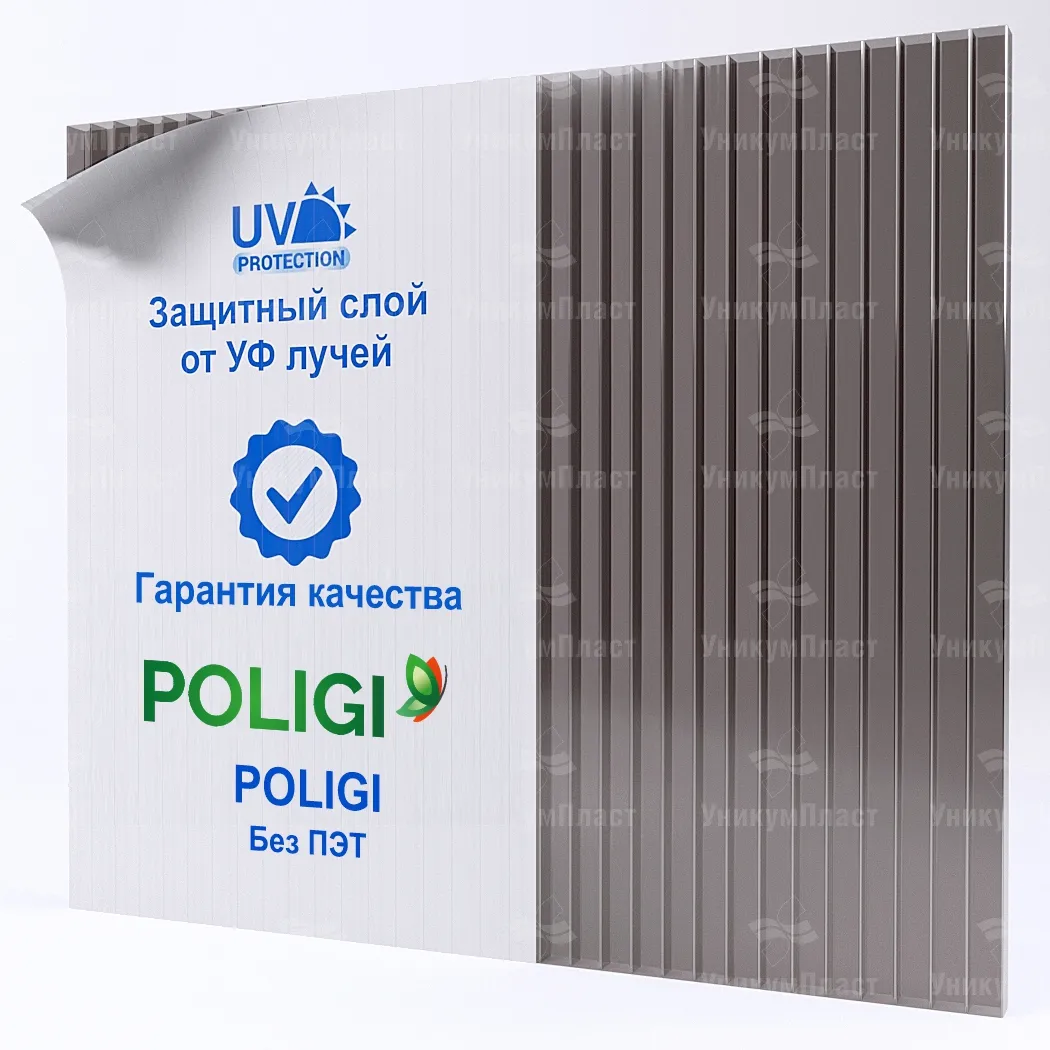 Организация «УникумПласт» предоставляет гарантии от изготовителя на период до 10 лет. При приобретении поликарбоната от бренда BORREX клиенту не придётся сомневаться в его качестве. В течение периода действия гарантии материал будет не менять изначальный оттенок, сохранят светопропускную способность. Также он выдержит максимально допустимые нагрузки.